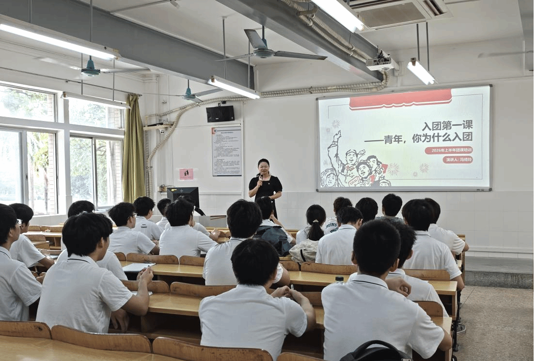 在开班第一课上,冯绮玲副书记以《青年,你为什么入团》为题作动员讲话。她从共青团的政治属性、历史使命和时代责任三个维度出发,引导青年学子回归入团初心,端正入团动机。冯书记强调,入团不是终点,而是追求政治进步的新起点,全体学员要深刻理解“共青团员”不仅是一个光荣称号,更是一份沉甸甸的政治责任。