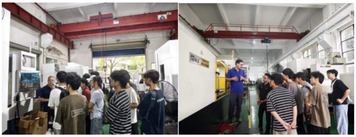 研学伊始,敏嘉公司技术副总经理李媛媛老师先是介绍了数控机床的基础知识及其主要分类两大板块,并强调研学过程中要注意安全,要听从资深专业人员的安排。随后,敏嘉公司工程师分组带领学生参观了公司中高档数控磨床、滚珠丝杆和滚珠螺母加工设备、多主轴加工中心的装配、结构及主要功能,并系统讲解了广东省高档数控机床及关键功能部件、机器人关键零部件的制造过程与关键工序。