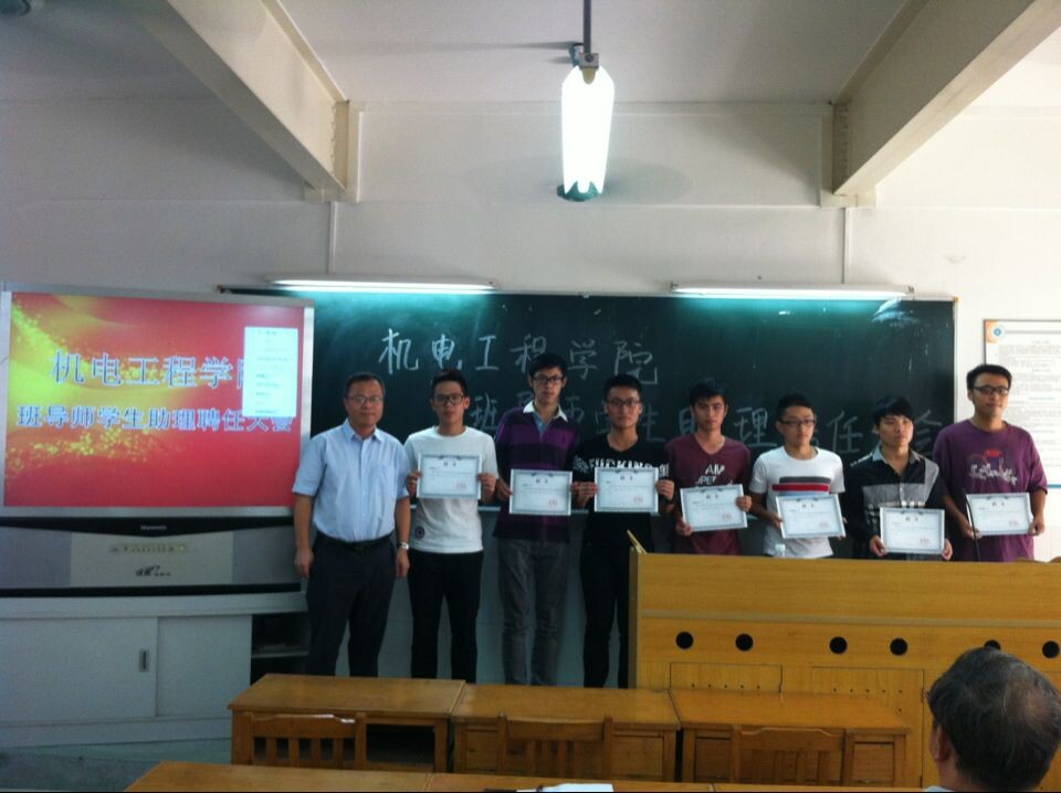 2014年10月16日14点20分,机电工程学院在思齐楼208举行班导师与学生助理聘任大会,出席会议的有机电学院林愉院长、张国庆副院长、李滟泽副院长、刘芳文书记,全体班导师、辅导员、学生助理和部分学生代表。