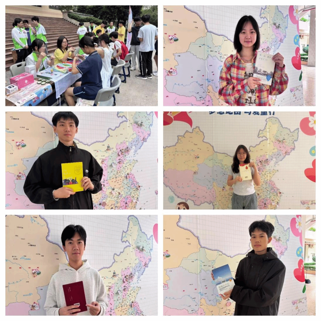活动现场暖意融融、书香四溢,三个核心环节亮点纷呈、成效显著。在“好书地图,爱心导航”主题展览区,一幅大型“爱心荐书地图”展板吸引了众多学子驻足参与,大家纷纷在展板上对应区域粘贴写有书籍名称、推荐语的“好书卡片”,用真挚的文字为留守儿童推荐经典读物,共同绘制出一幅汇聚青春爱心的“书香导航图”,每一张卡片都承载着对留守儿童的美好期许。