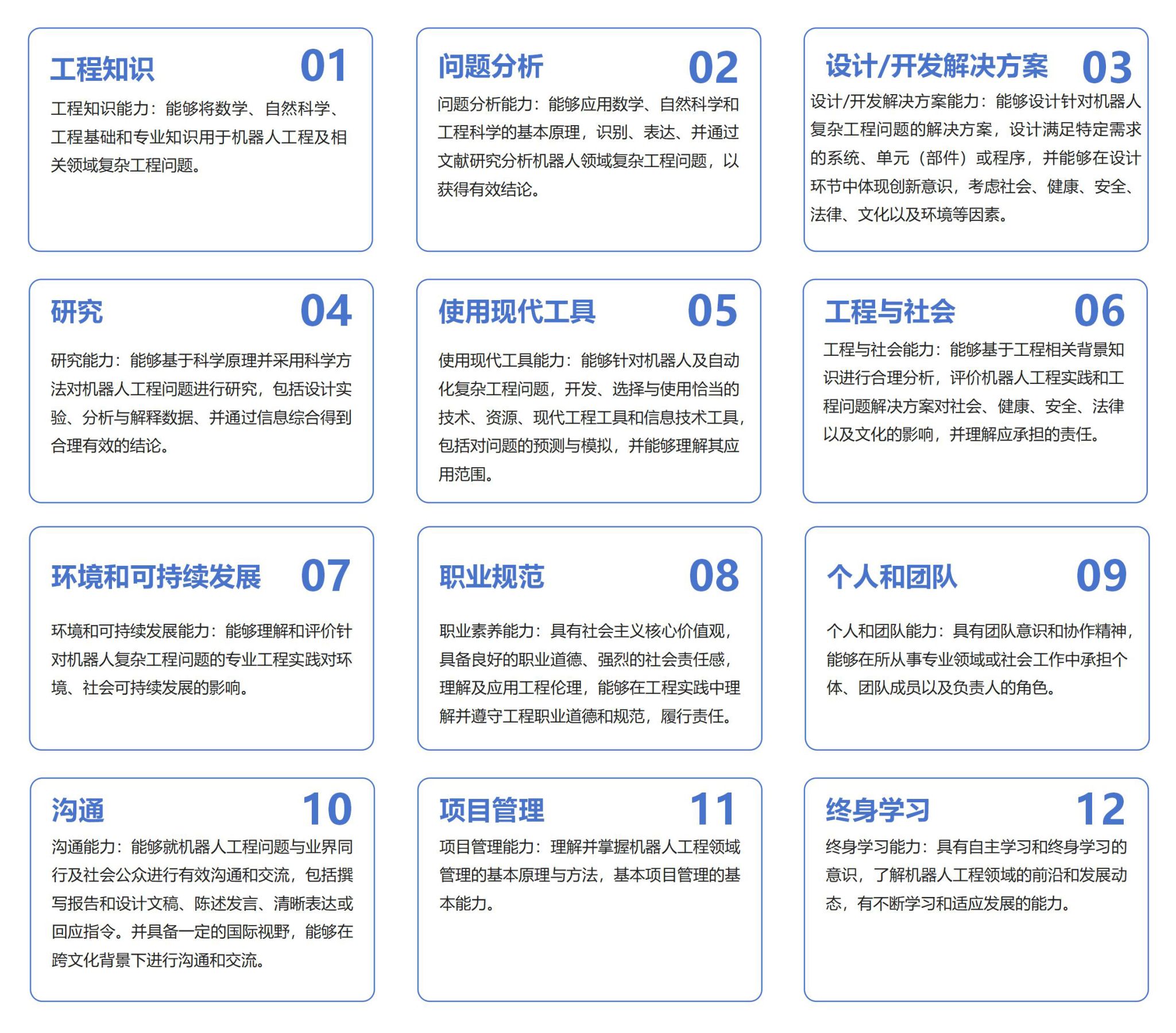 素质目标:具备创新思维、团队协作能力及跨学科融合意识。了解机器人伦理、安全规范及行业发展趋势。